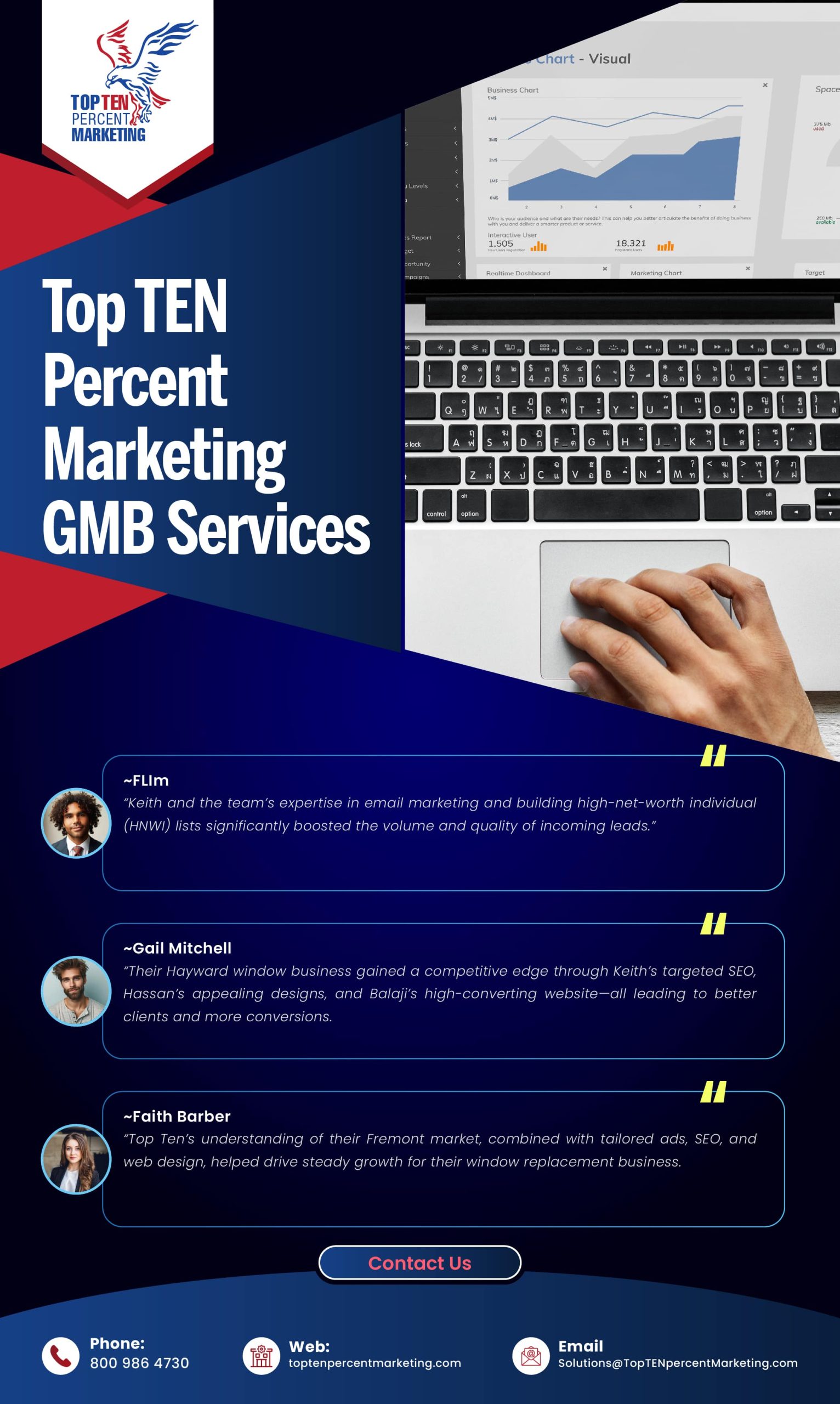 Top TEN Percent Marketing ensures every piece works together. Their knowledge of SEO, segmentation, and AI integration makes campaigns more efficient. Their credibility comes from years of measurable results.