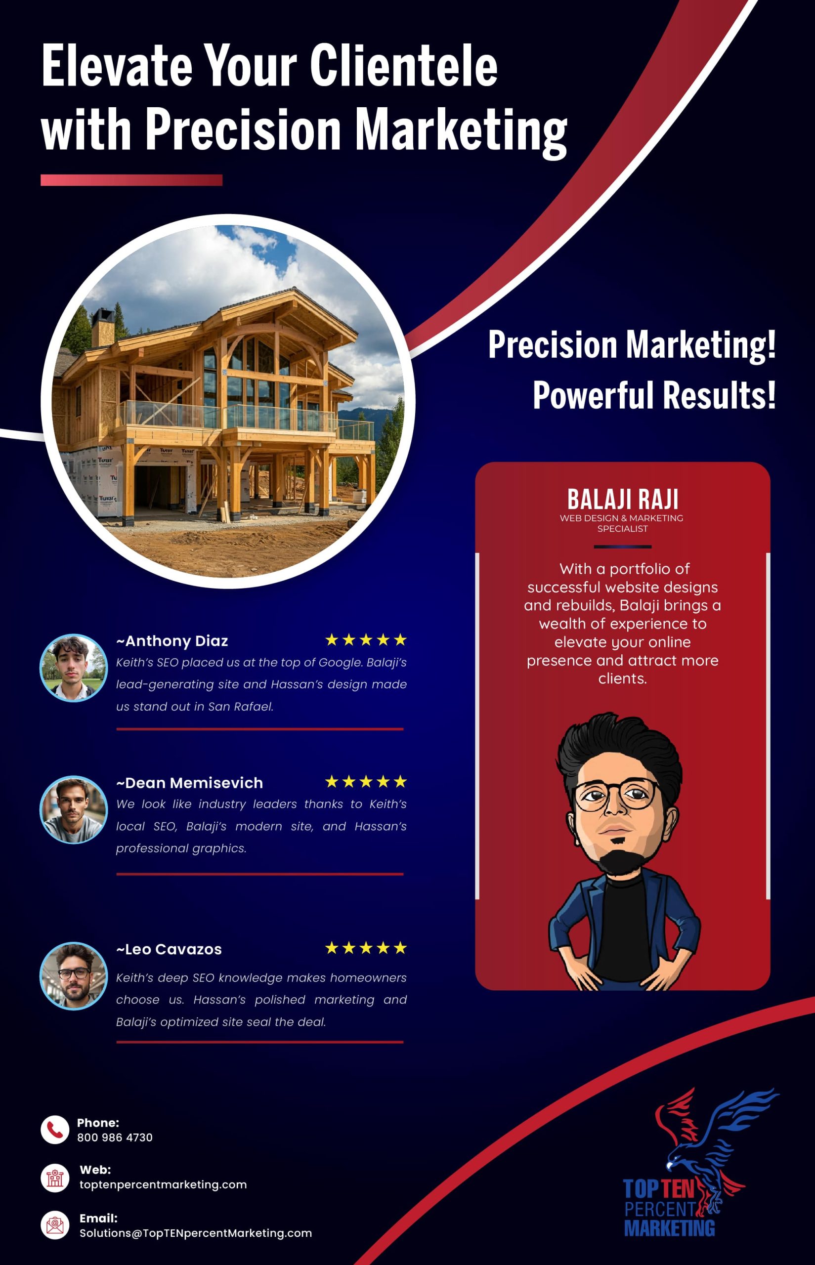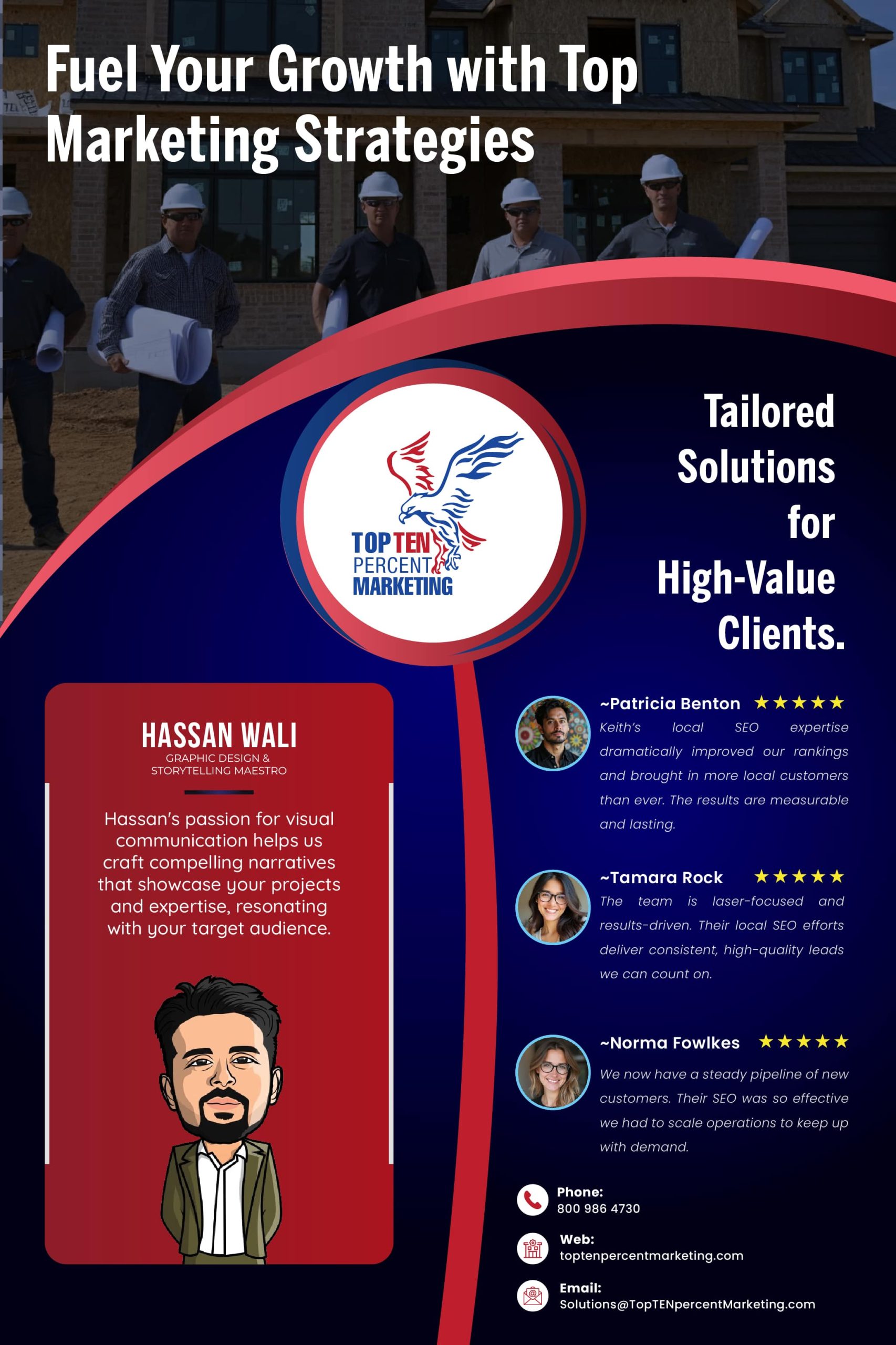 Top TEN Percent Marketing delivers this balance effectively. We focus on High Net Worth Target Marketing, General Contractor Marketing, and GC SEO. Our campaigns target the right clients, raise authority, and build trust.