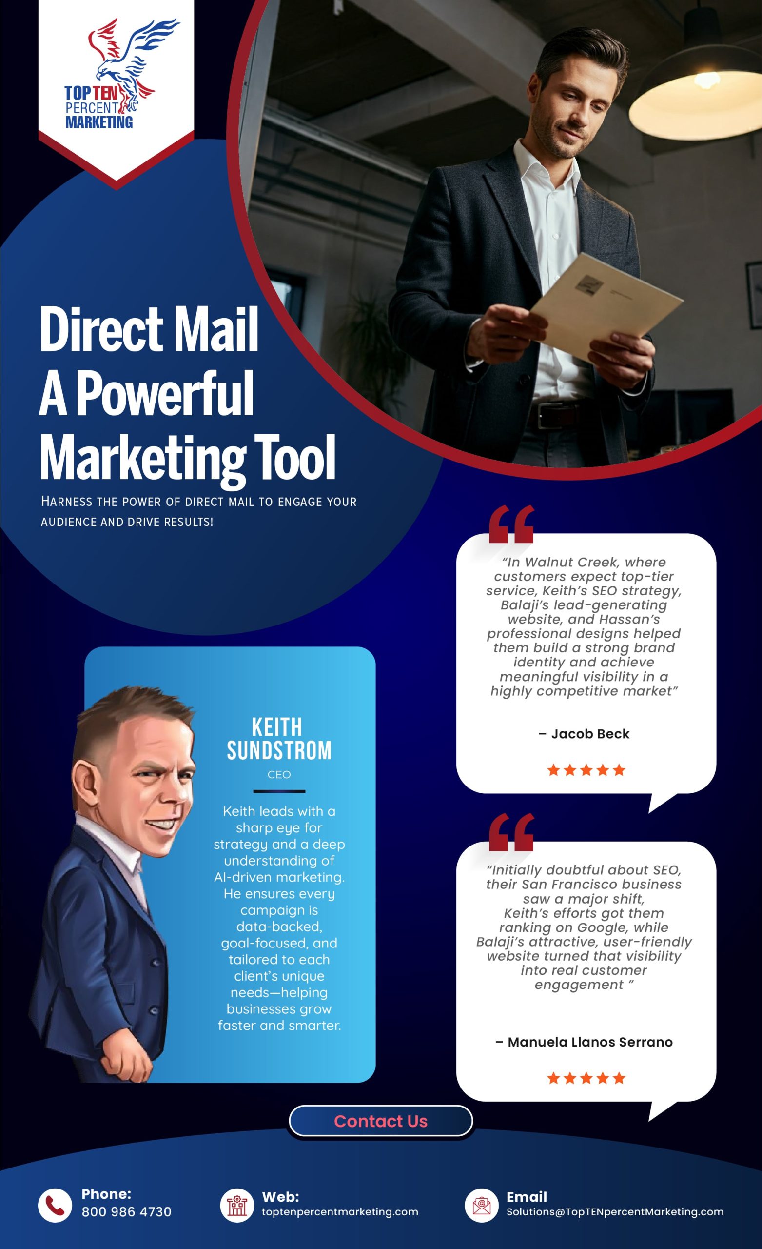 Direct mail is a great option if you are looking for a way to reach your target audience, build relationships, and generate leads. Contact Top TEN Percent Marketing today to learn more about how we can help you create a direct mail campaign that will achieve your business goals.
