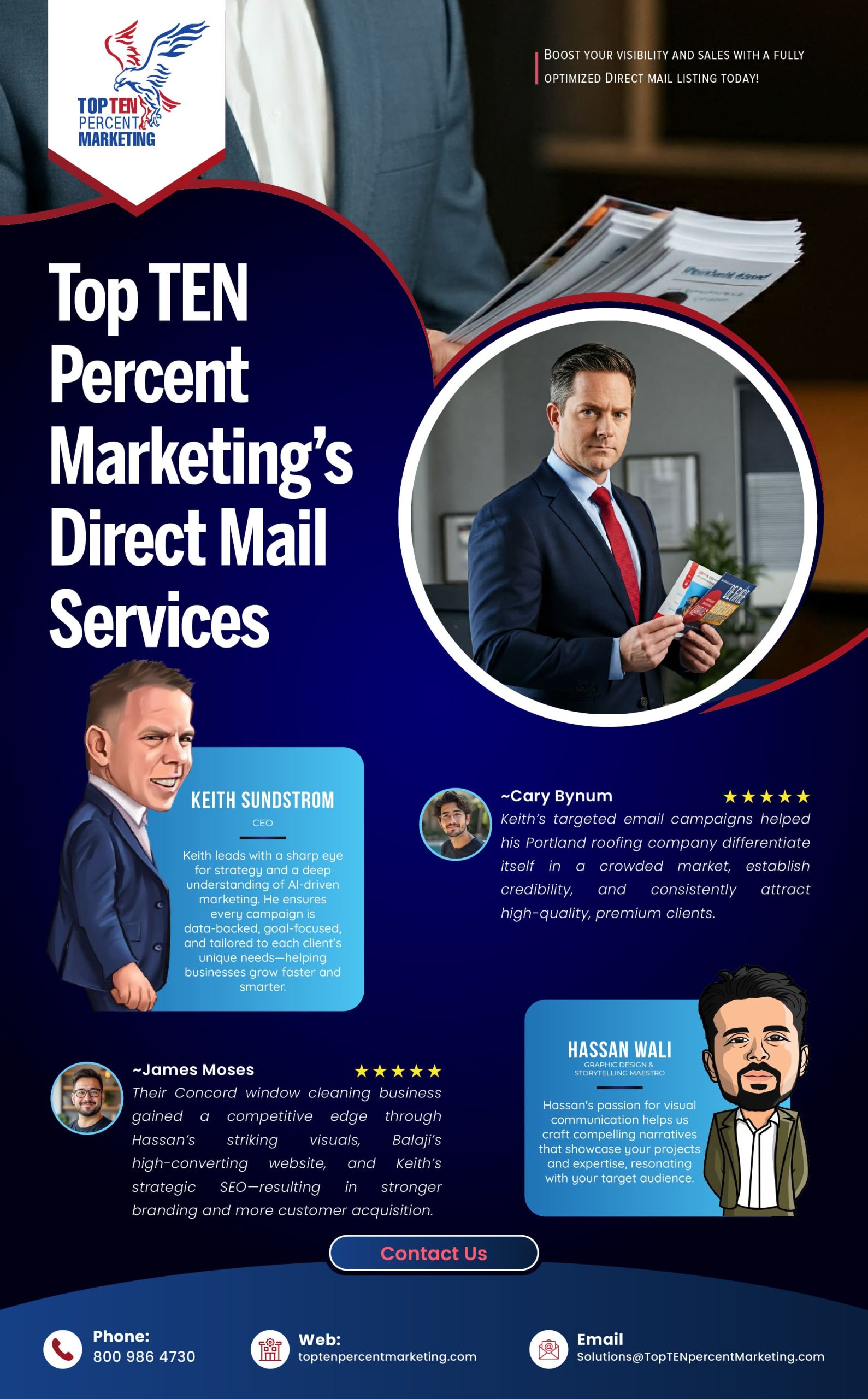 Top TEN Percent Marketing is a leading direct mail agency. We help businesses create and execute effective direct mail campaigns that deliver results. We have a proven track record of assisting companies to increase their sales, improve their brand awareness, and boost their bottom line.