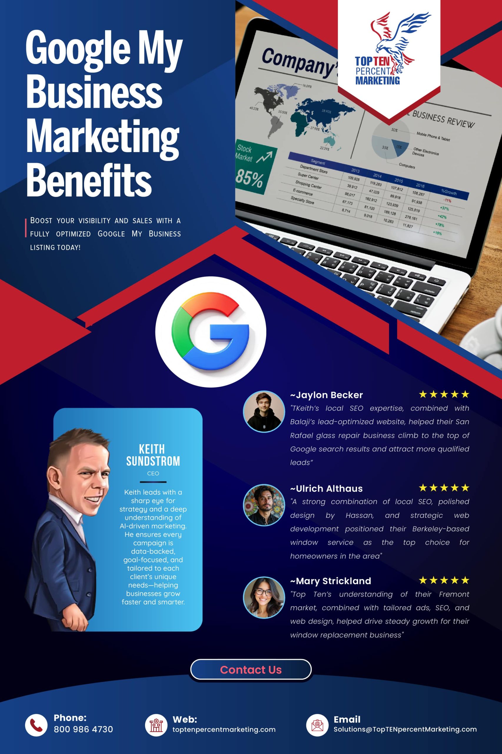 If you want to improve your business’s online visibility, attract new customers, and drive more sales, then Google My Business marketing is a great option. Contact Top TEN Percent Marketing today to learn how we can help you achieve your business goals.