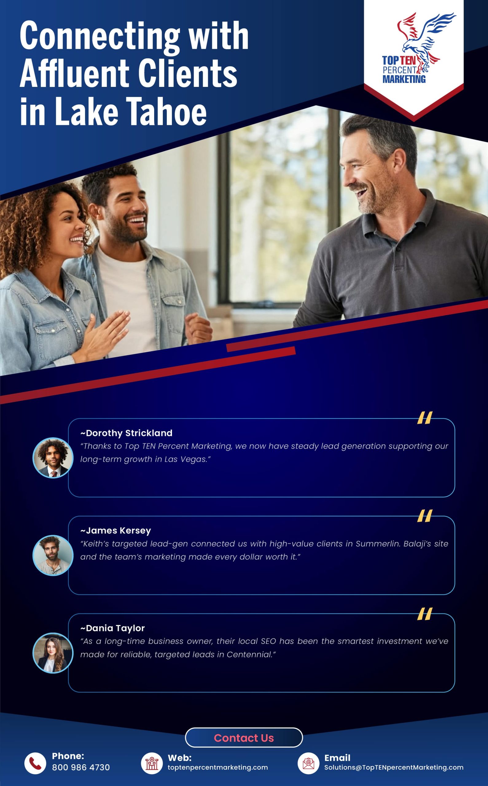 By focusing on these key areas, Top Ten Percent Marketing can help your Lake Tahoe business connect with affluent clients, elevate your brand, and achieve sustainable growth. 🚀